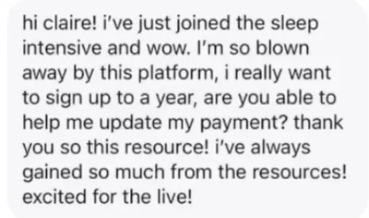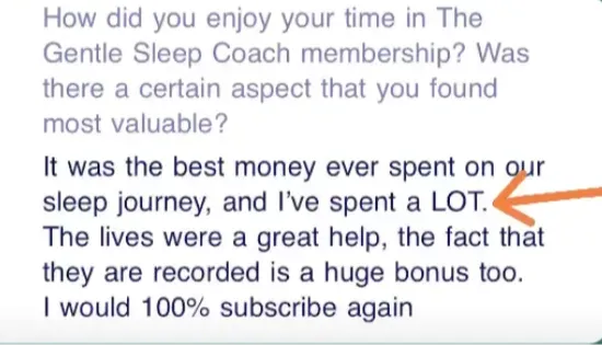“It was the best money ever spent on our sleep journey and I’ve spent A LOT! The lives were a great help, the fact that they are recorded is a huge bonus too. I would be 100% subscribe again.”